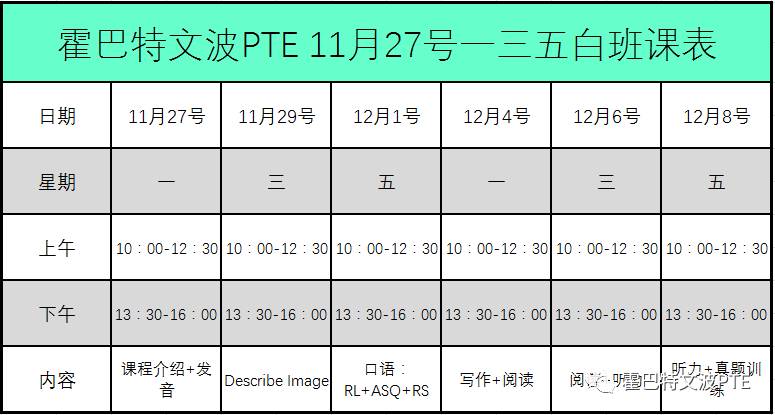 很遗憾的是,最新的11月13号一三五白班和14号二四六白班都已经报满了下一期课程是11月27号开班的周末班!一起来看看课表吧!~