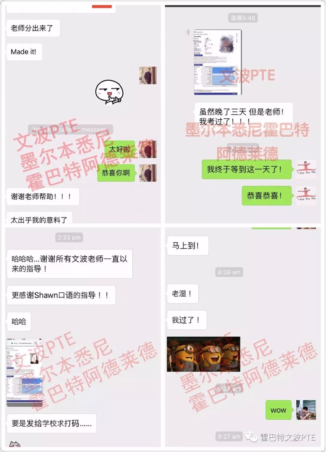 大家好,我是在文波英语Hobart校区上课的Alex,在这里我先感谢一下文波pte尤其是Grace老师。我觉得Grace老师的讲课风格很吸引人,而且Grace老师的发音可以说堪称Native Speaker的级别。我觉得她上课的时候,尤其是教课的口语示范里学到了很多。也许是我的基础和底子不是很好,前前后后断断续续的复习了几个月,一直到11月28号,考试一直考了5次才过。所以我前前后后复习pte的时间加起来估计得有4个多月的时间。 现在想想过去,我的心得是—— 1,无论何时都要调整好自己的心态 11月28号是我最后一场考试,考完以后心里有点慌慌的,因为FIB做的很烂。当时考听力的时候,我题目的顺序是SST,然后是多选,等到了FIB时候,空了5个空,加上之前口语里面的RS做的也不是很好(RS里面有口语的分数,很多句子都是复述的模棱两可),等于是SST本身遇到新题目的情况下,FIB又空了5个空,而且最主要的我为了那五个空纠结了很久(没有直接点next而是花了好久想去猜出来那几个空),导致我一度认为后面的时间可能会不够用,我记得当时最紧张的时候是题目做到了 6/16,但是时间只剩下10分钟了,所以当时心态有点崩溃,再到后面做HCS以及单选的时候,真的是听完录音就想点next,但是后来想到了WFD还有HIW还有很大的分数时候,所以赶紧调整好了心态。 做到WFD的时候,那时候我还剩下2分50多秒了,但是有3道题,不过我还是让自己努力去做好这部分。可以说WFD我都做的很好,两道题目是鸡精里面的,最后一道好像不是鸡精里面的,所以忘记了The sociology department is highly regarded worldwide.Before submitting your decision, your advisor must approve your application. 后来成绩出来以后,听力虽然是最低的,但是也过了。所以请一定要调整好自己的心态,虽然说每个题当然是都做对了比较好,但是不要因为某一个地方失误了就放弃所有其他的题目,pte考试个人感觉还是很人性化的。 2, 努力了就一定有回报,无论何时都不要放弃 我一共考了5次pte。 我从来没有一次是别的都过了就只有某一项与7炸"擦肩而过"的,而是每次考试都在感觉自己在进步, 我感觉只要你付出努力,就一定会有收获,因为PTE还是很人性化的,它给出了很多小项分数,可以让文波英语的老师们帮你有方向的分析哪里有所不足。 关于pte考试的题目的准备 关于口语 1,DI一定要保证所有的鸡精都可以流利应对,文波网站上很多DI的题目都可以做练习,我这次考试考到了Pine Thinning造纸的那道题 2,RS记住关键字,就算没记得很清楚,也一定要说点东西,因为RS只要说出来一些关键词组成一个句子就能有分,而且内容分不影响你的流利度 3,口语一定要注意流利度,无论是Read Aloud还是DI,哪怕有些单词读漏了,或者有些DI里面的年份读错了一定不能回去纠正,let it go,我就有容易读错年份的习惯,经常手指着数字比如1892愣是能读成1992,包括百分比我也经常读错过去经常回去纠正,所以流利度经常才60多分,后来索性不管了,反而发现口语的分数上去了,我感觉是因为流利度上去了,变成了80多分,口语分数自然也就上去。 关于阅读 1,个人感觉阅读拼的就是词汇量,平时多注意一些常用单词的积累,还有一些固定搭配 2,RO也要多练习,个人感觉先找pair之间的关系,再找整体的关系,保证至少能得到pair的分数,因为RO是按照pair给分的 关于听力 1,WFD是重中之重,相信在我上面写到的心态里面,大家应该感觉到了,我的目标是7分,即便我FIB已经空了5个空了,WFD做好最后听力还是过了所以在这里我想再强调一点,WFD的鸡精里面的每句话一定都要过一遍,因为WFD你背下来这句话了,基本理解他的意思了,再加上考试鸡精WFD命中率很高,你只要听到类似的句子,就一定会对句式有印象,虽然我们不能完全依赖鸡精,但是对你在考试中组建句子得结构会有很大的帮助 另外,有问题一定要问文波的老师,他们都是很负责的,我上课过后很久找Grace老师帮忙问问题,Grace老师都会帮助回答。还有霍巴特文波英语这边的咨询老师,有任何学习上的问题都可以及时询问。